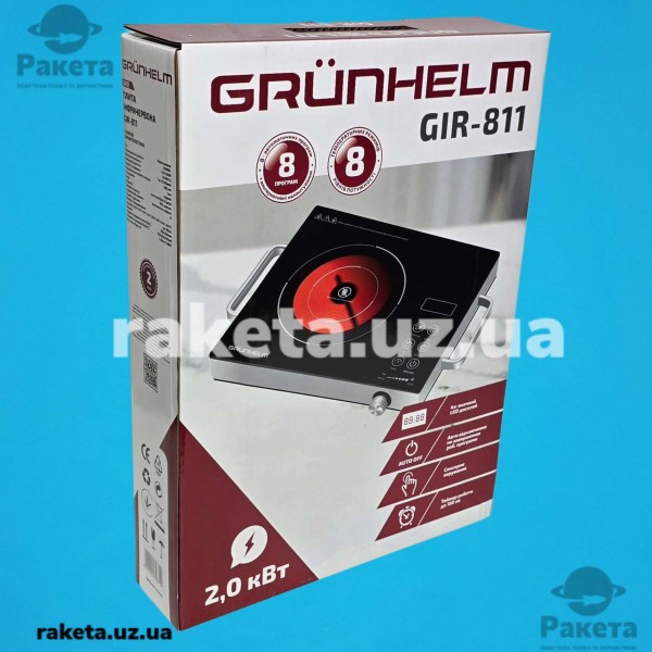 Електро плита настільна інфрачервона Grunhelm GIR-811 1-но камфорна, загальна потужність 2000 Вт, регулювання нагріву, захист від перегріву, таймер