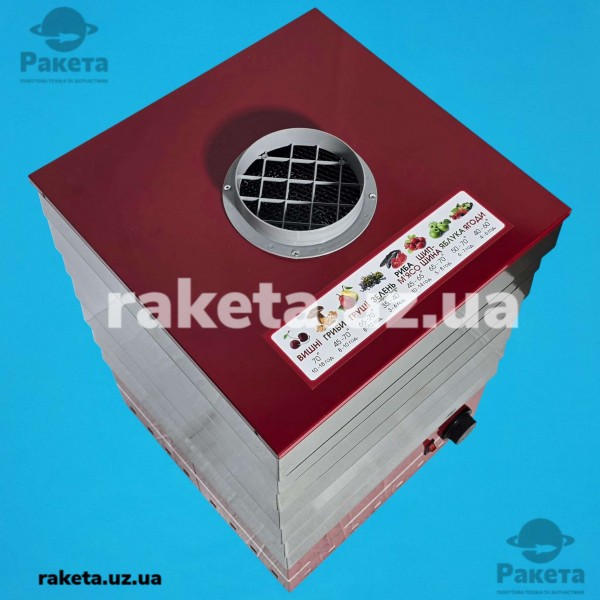 Електросушарка призначена для зневоднення продуктів із максимальним збереженням їхнього смаку, кольору та корисних властивостей. Вона дозволяє одночасно сушити великі об’єми завдяки 7 окремим лоткам. Плавне регулювання температури в межах 30–70 °С забезпечує оптимальні умови для кожного виду продуктів — від ніжних трав до соковитих фруктів. Сушарка рівномірно розподіляє тепло по всій площі, що гарантує стабільний результат.