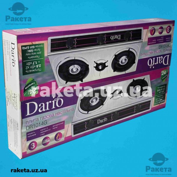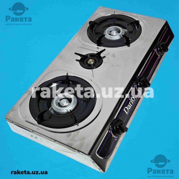 Газовий таганок Dario DR1014G 3-х камфорний нержавійка автопідпал теплова потужність 2х2,8+1,7 кВт