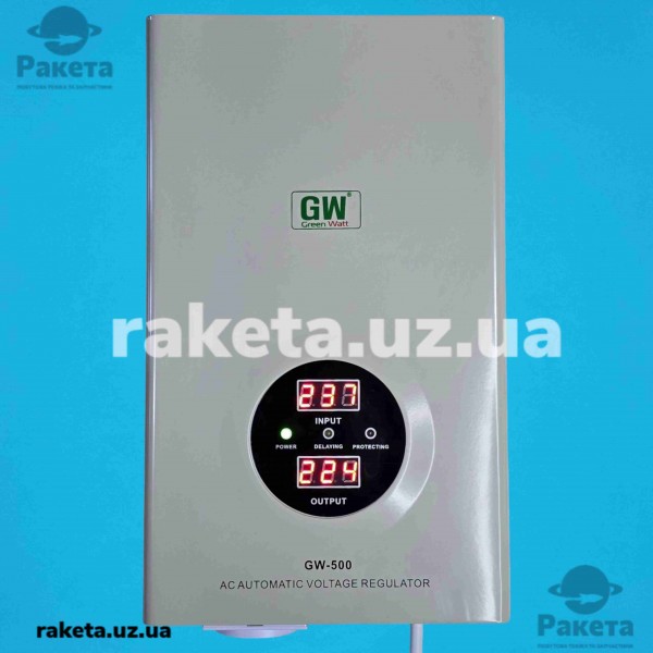 Стабілізатор напруги GreenWatt GW-500, потужність 500 Вт, однофазний, релейний