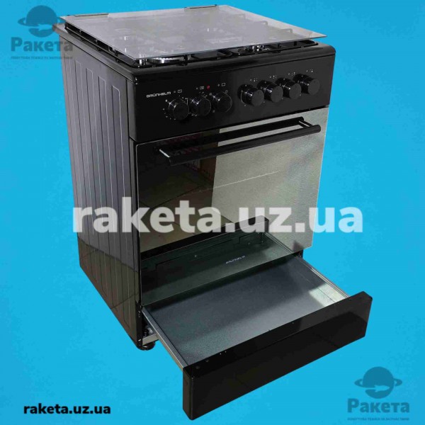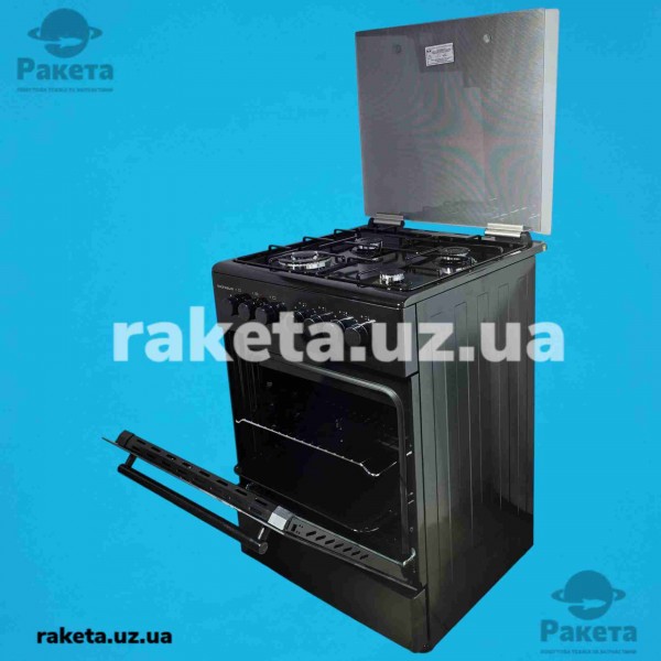 Плита комбінована Grunhelm FG6612G 60 см, дзеркальна, кришка скляна, піджиг в ручках, конвекція, гриль, вертел